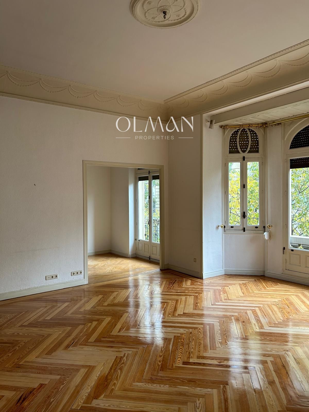 Situado en la prestigiosa calle Serrano, en pleno Barrio de Salamanca, este magnífico piso reformado se ubica en la quinta planta de un edificio de mediados del siglo XX, que cuenta con zonas comunes muy cuidadas, ascensor y servicio de portería.